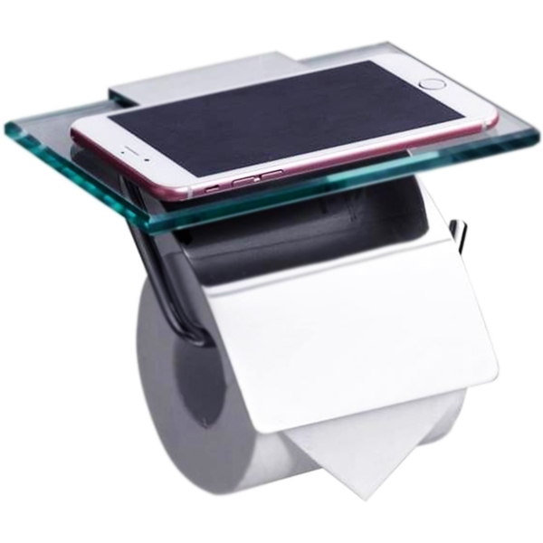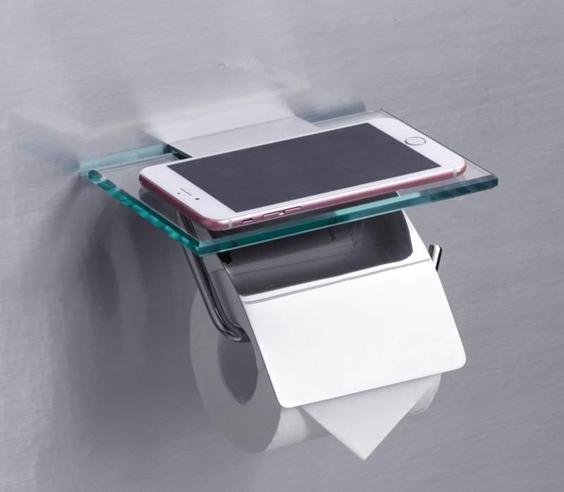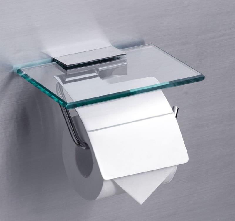 Настенный держатель туалетной бумаги Rush Edge ED77131 с крышкой и стеклянной полочкой.