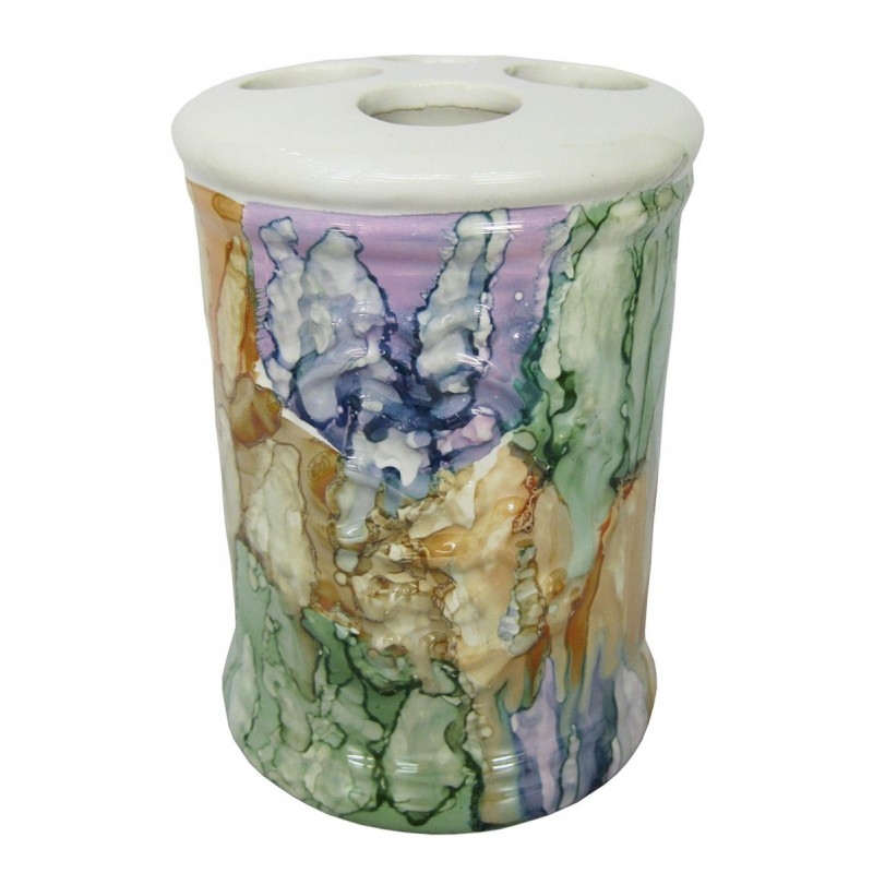 Стакан для зубных щеток Fixsen Fany A278-DC-2 настольный - аксессуар для ванной комнаты с абстрактной росписью. Глянцевая глазурованная поверхность.