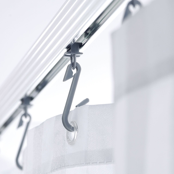 Крючки для штор вставляются в нижние полозья.