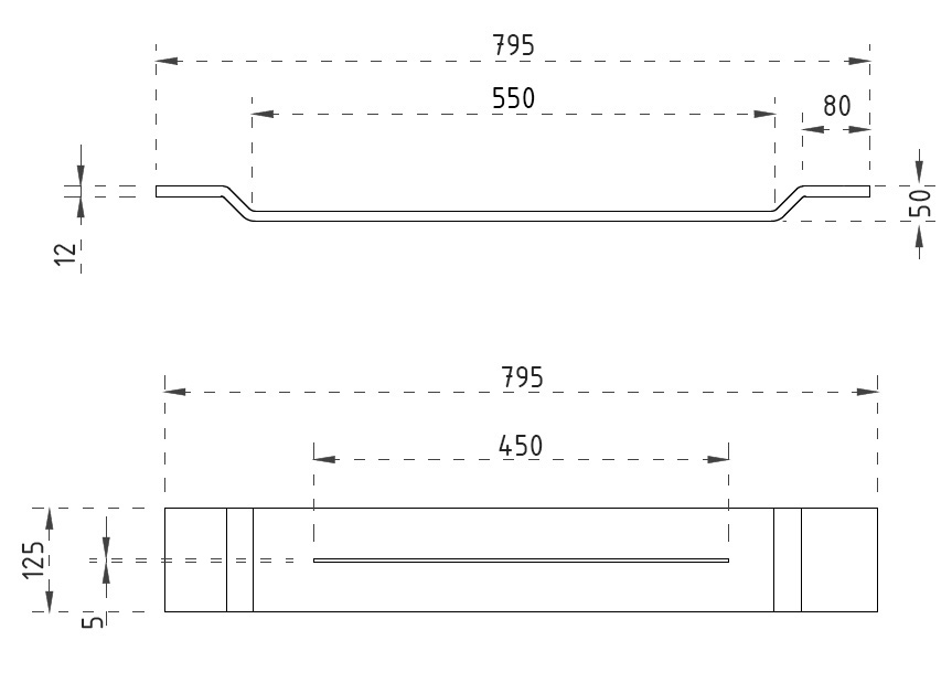- Размеры (ДхШхВ): 79,5x12,5x5 см.