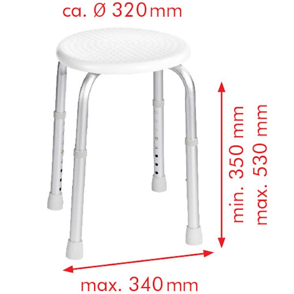 Табурет в ванную Ridder Assistent А00603101 с регулируемой высотой. Посадочная часть имеет рифленую поверхность.