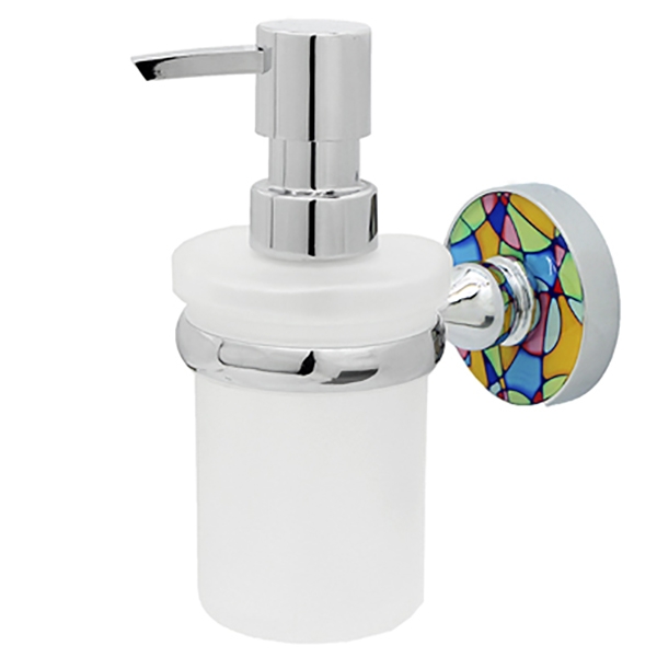 Дозатор изготовлен из матового стекла. Материал держателя - металл с хромоникелевым покрытием, пластик.