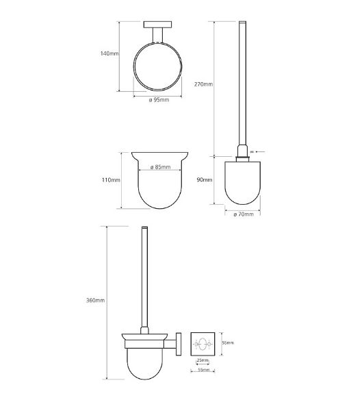 Ершик для унитаза с даржателем, стекло, черная щетка. Настенный монтаж. Цвет хром.