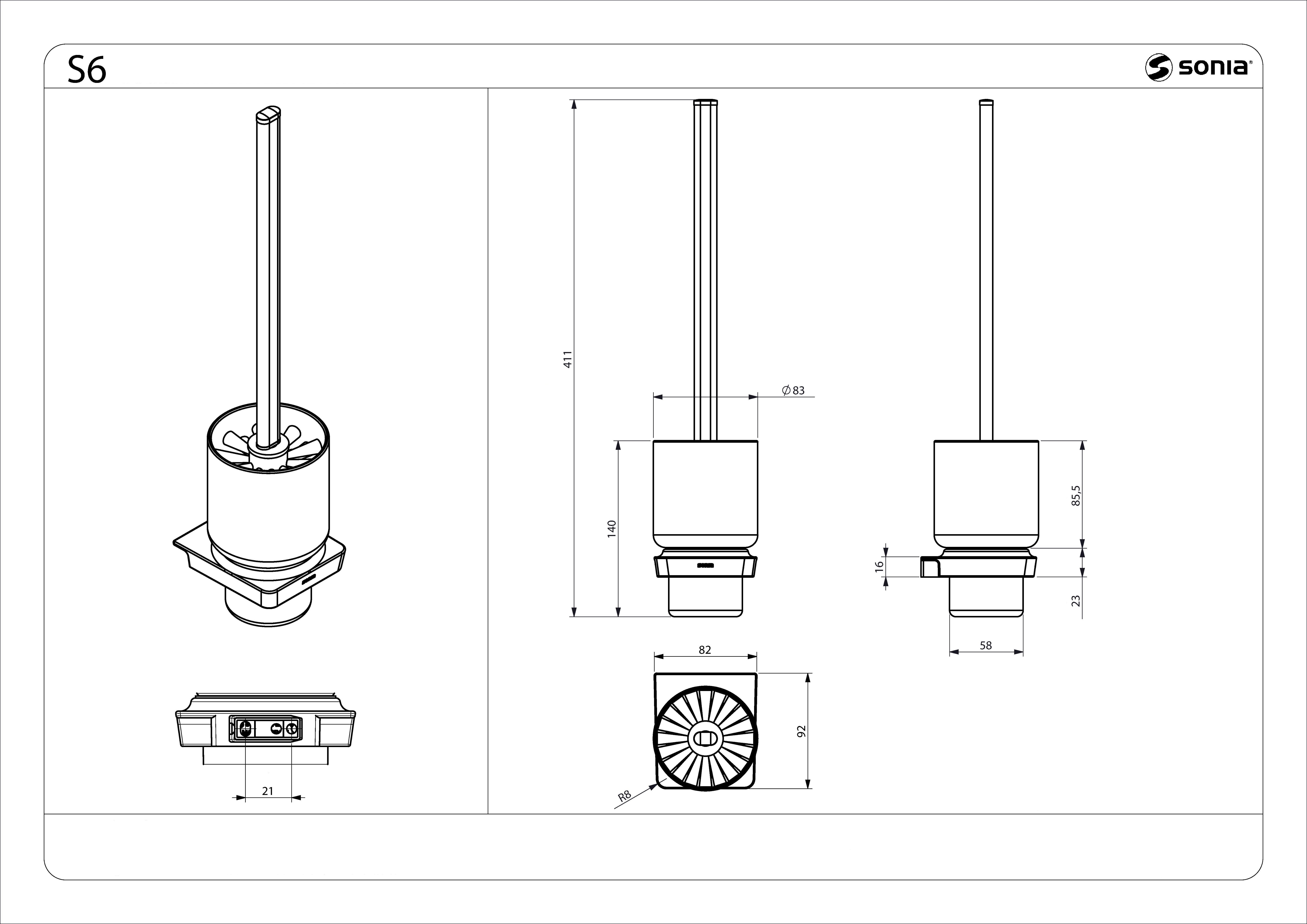 Ершик для унитаза Sonia S6 black 166497 подвесной.