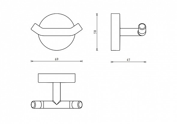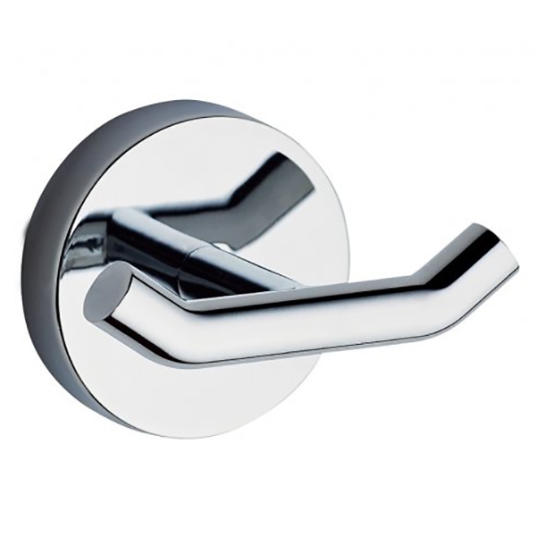 Место для двух полотенец. Округлая форма крючка смотрится эстетически аккуратно, конструкция изготовлена из цинка, имеет специальное антикоррозионное покрытие, что позволяет использовать изделие в местах повышенной влажности, перепадов температур.