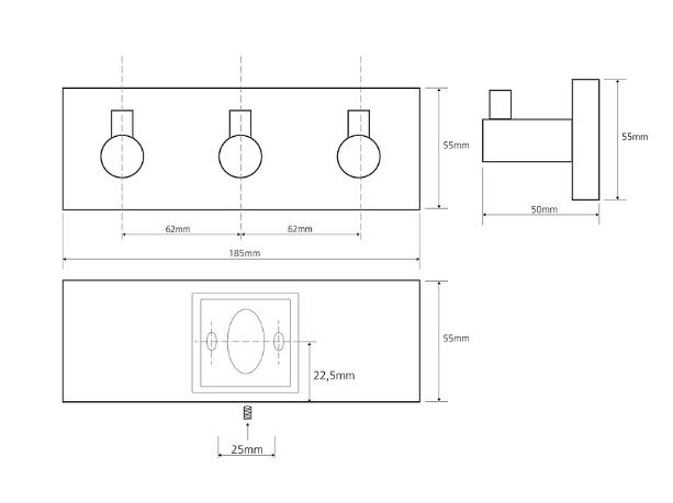Тройной крючок Bemeta Beta 132405232. Подвесной монтаж. Цвет хром.