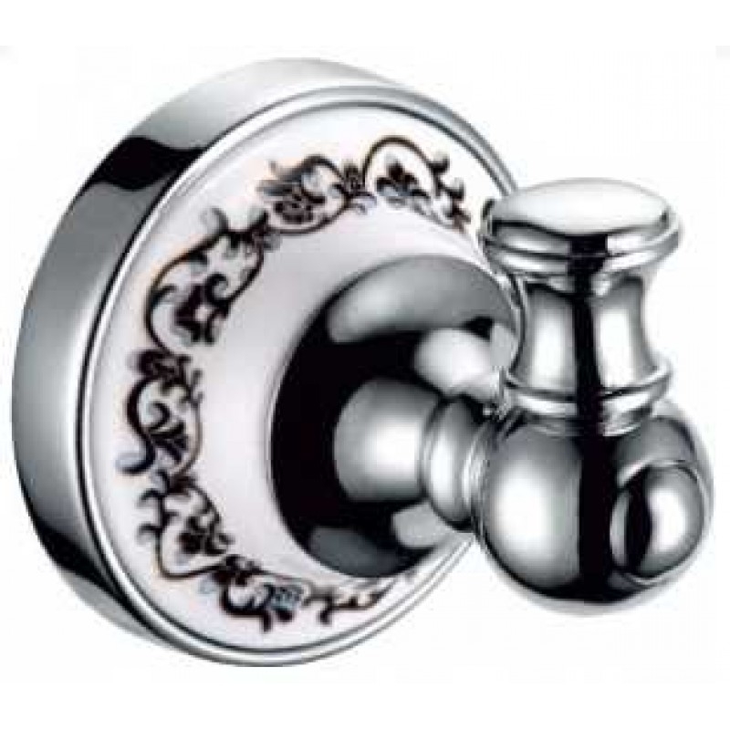Крючок выполнен в элегантном дизайне, который будет органично смотреться в интерьере ванной в классическом стиле или ретро. Керамический декор настенных креплений белого цвета с черным изящным орнаментальным узором.