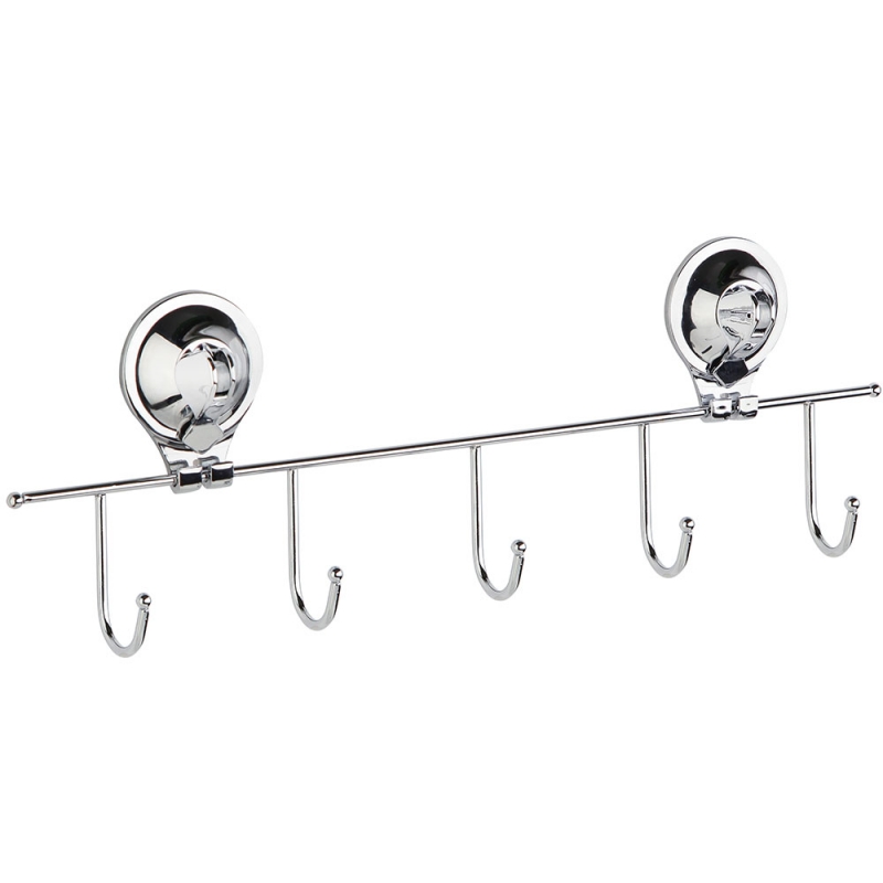 Вешалка для полотенец на присоске Fora Triumf 39 T005, 5 крючков - изготовлена из хромированного металла.