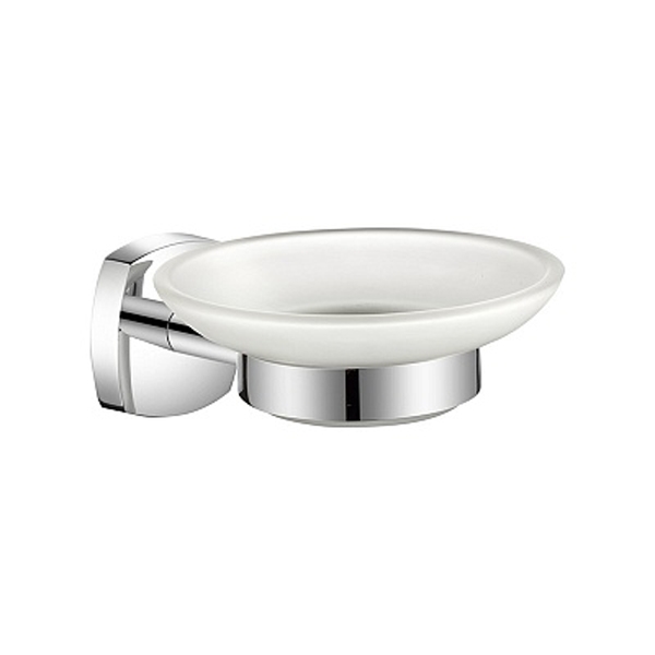 - Чаша мыльницы изготовлена из матового стекла. Особенностью является наличие уплотнительной прокладки, которая надежно фиксирует емкость в держателе, а также предохраняет стекло от появления царапин.
