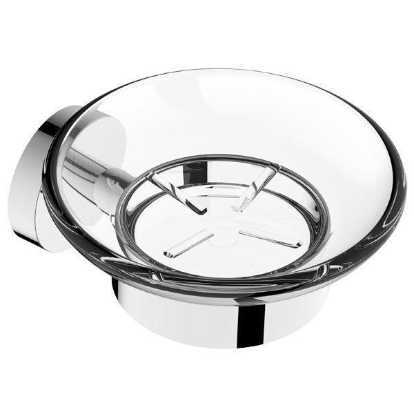 Держатель изготовлен из качественного латунного сплава с защитными свойствами от коррозии и покрытием хром. Мыльница из прозрачного стекла. Монтаж настенный, скрытое крепление шурупами.