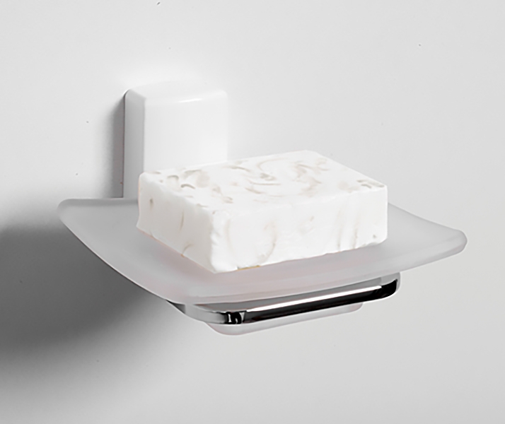 Мыльница изготовлена из матового стекла. Материал держателя - металл с хромоникелевым покрытием, пластик.