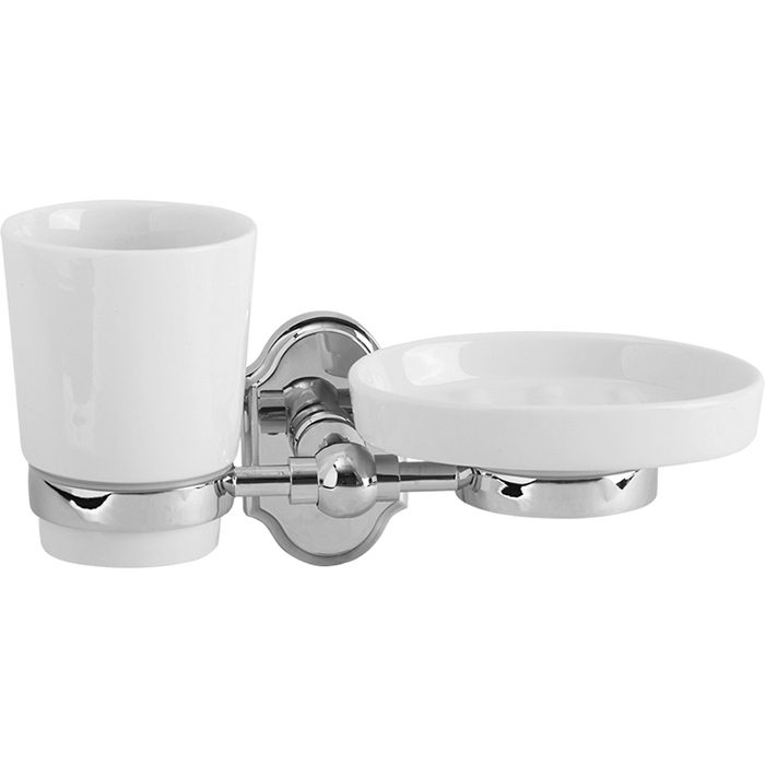 Стакан для зубных щеток с мыльницей Veragio Stanford VR.STD-7743.CR. Хромо-никелевое гальваническое покрытие обеспечивает устойчивость к царапинам и придает изделию зеркальный блеск.
