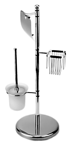 Многофункциональная напольная стойка Potato P325 с ёршиком со стеклянной чашей, с держателем для туалетной бумаги и держателем для дезодоранта.