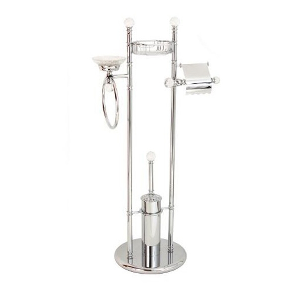 Стойка 4-х функциональная Migliore Cristalia Swarovski ML.CRS-60.244 CR имеет держатель для туалетной бумаги, мыльницу с кольцом для полотенца, полку-решетку, ершик. Цвет хром.