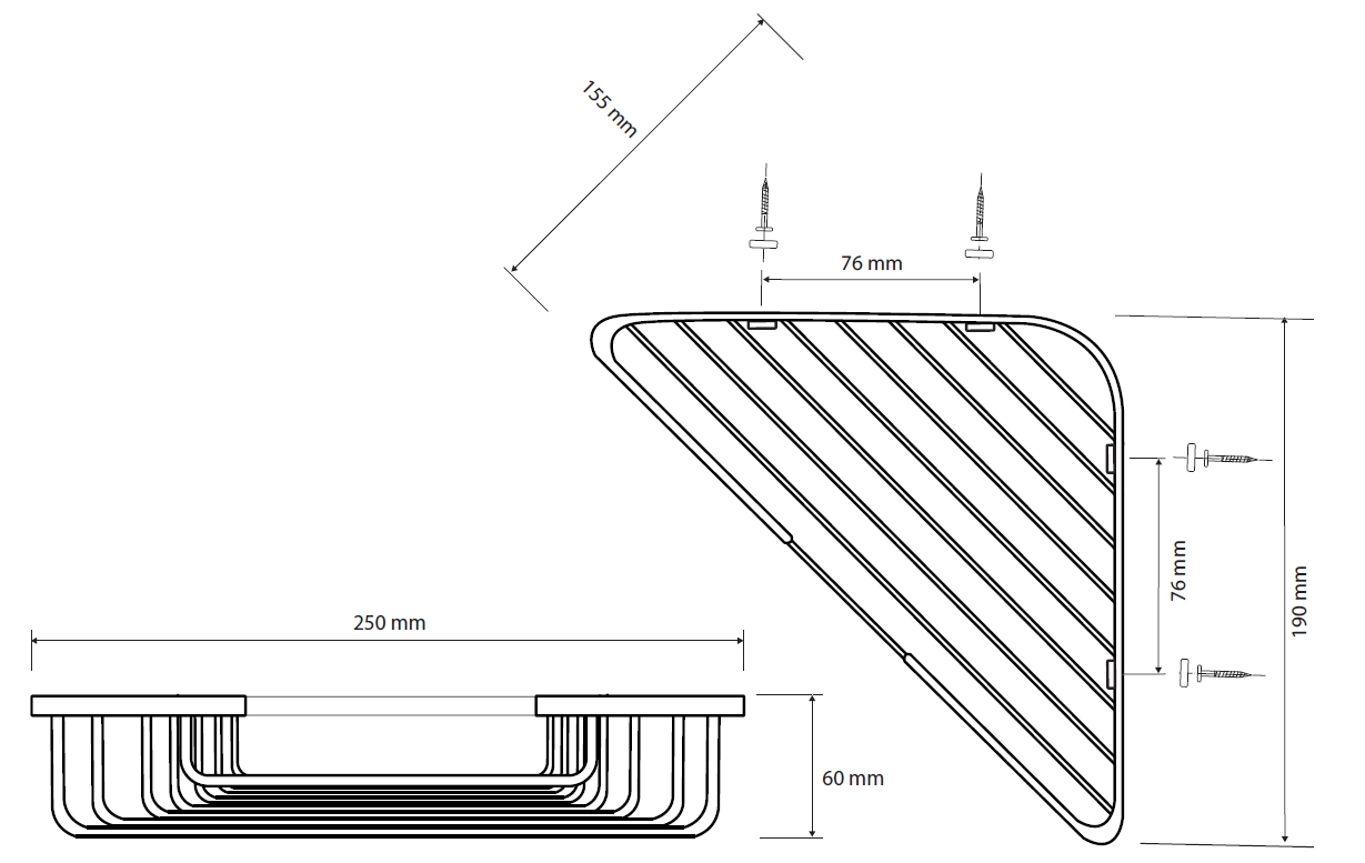 - Размер (ШхВхД): 25 х 6 х 15,5 см.