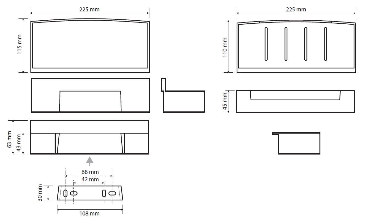 - Размер (ШхВхД): 22,5 х 6,3 х 11,5 см.