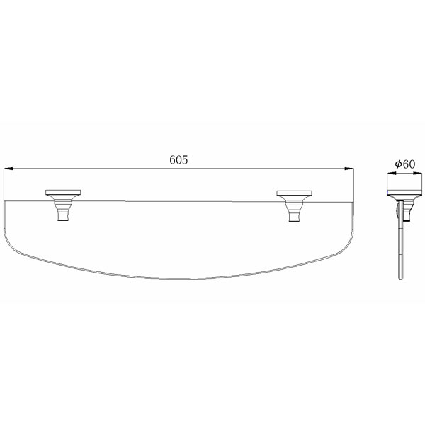 Держатели изготовлены из качественного латунного сплава с защитными свойствами от коррозии и покрытием хром. Полка из прозрачного стекла. Монтаж настенный, скрытое крепление шурупами.