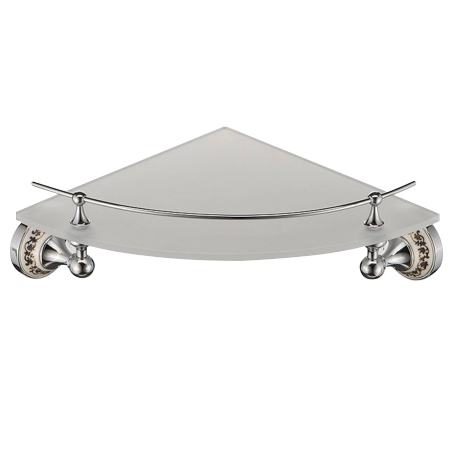 Полка угловая стеклянная Schein Saine Chrome 7053048 с ограничителем. Аксессуар выполнен из прочного матового стекла и латуни, не подвержен коррозии.