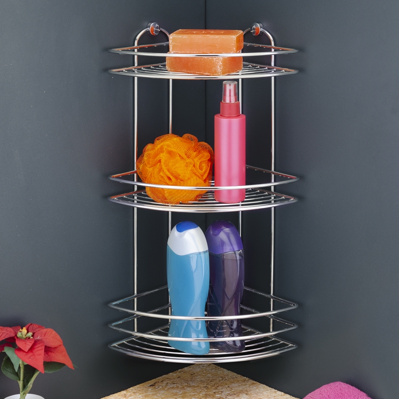 Полка-корзина Tekno-tel BK023SSM угловая трехъярусная. Выполнена из высококачественных материалов. Подчеркнет современный стиль любой ванной комнаты или кухни.