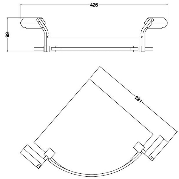 Полка угловая стеклянная Schein Watteau 1212B1 с ограничителем 1-этажная. Аксессуар выполнен из прочного матового стекла и хромированного металла, не подвержен коррозии.