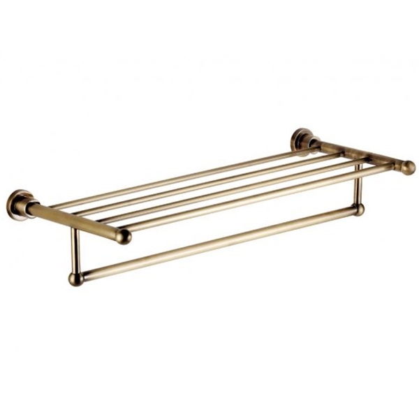 Полочка с полотенцедержателем Aquanet 3862 189274 выполнена из латуни, которая обеспечивает прочность и высокую устойчивость к коррозии. К ним перпендикулярно крепятся три стержня, которые образуют полочку, на которую можно поставить гигиенические средства. Так же есть нижний стержень, который предназначен для размещения полотенца. Устанавливается при помощи надежных креплений, которые скрыты внутри декоративных элементов круглой формы.
