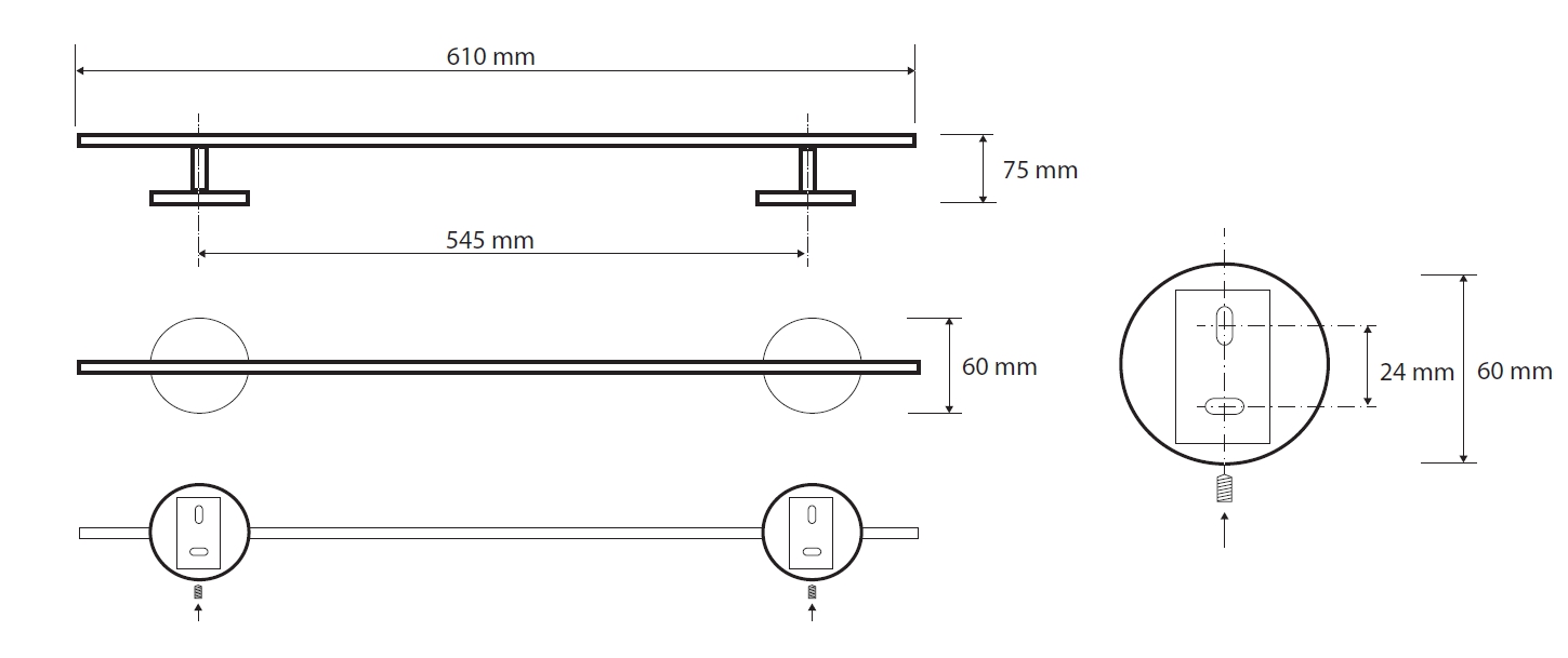 - Размер (ШхВхД): 61 х 6 х 7,5 см.