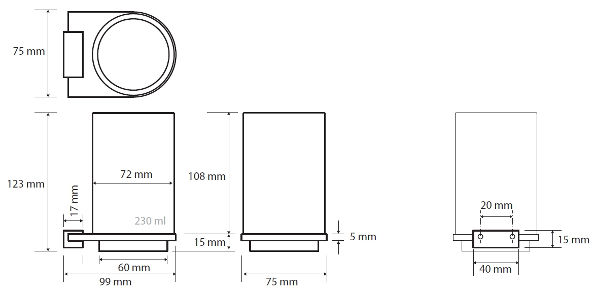 - Размер (ШхВхД): 7,5 х 12,3 х 9,9 см.