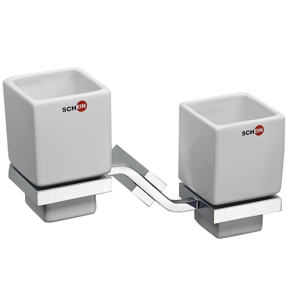 Стакан настенный Schein Watteau 124CS двойной. Выполнен из керамики и хромированного металла, не подвержен коррозии. Аксессуар будет отлично гармонировать с любыми атрибутами ванной комнаты.