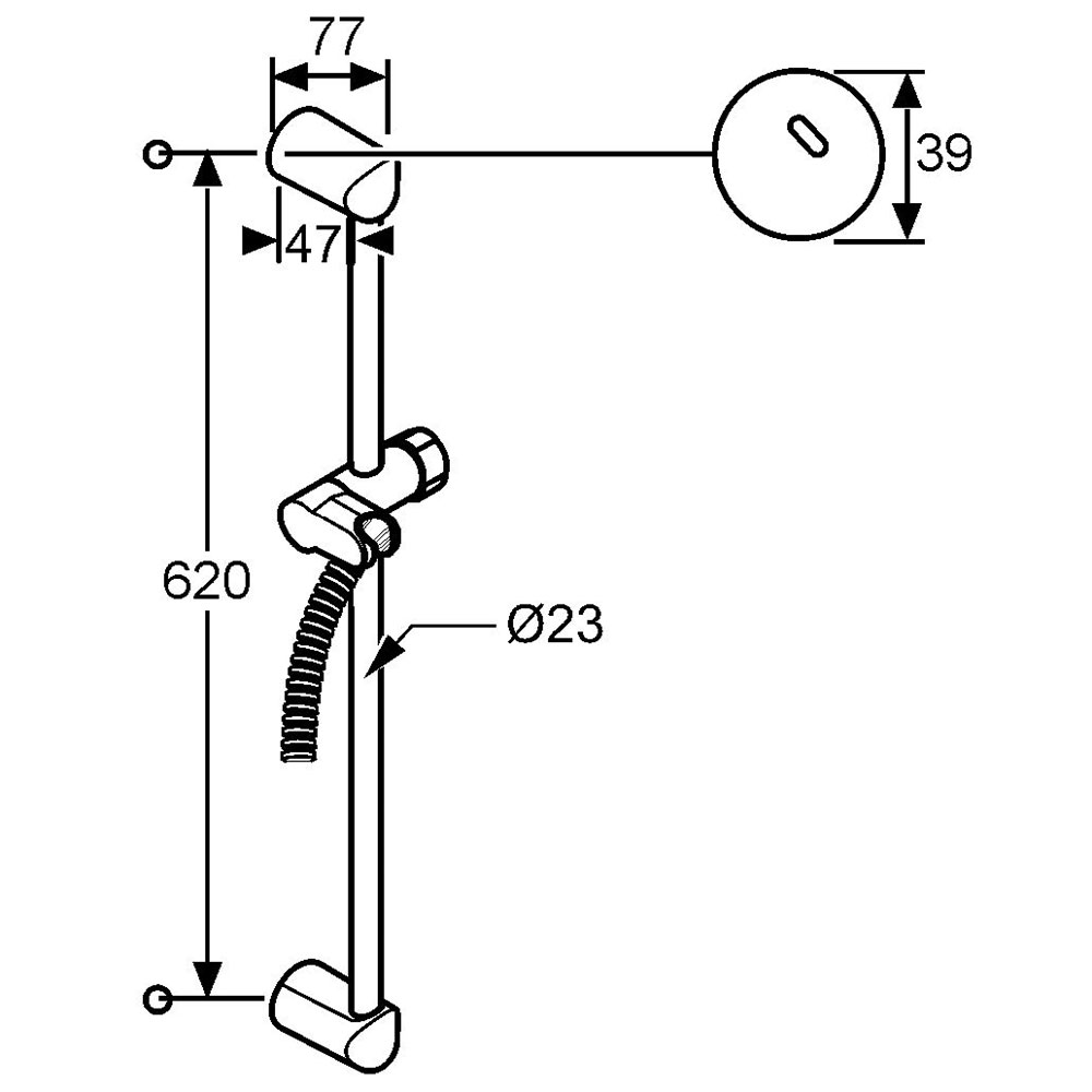 - Передвижной держатель для душа, регулируемый по вертикали и горизонтали со шлангом.