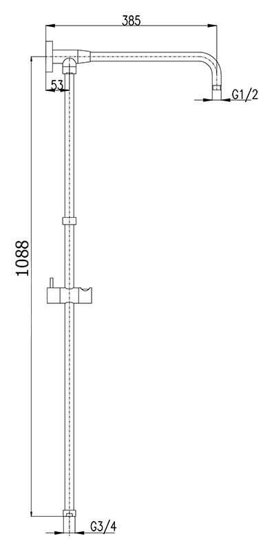 Душевая штанга Rav Slezak MD0631 из металла для верхнего и ручного душей. Подвод воды G3/4, подключение верхнего душа G1/2. Высота штанги 1088 мм, длина кронштейна для верхнего душа 385 мм. В комплекте штанга и комплект крепления.