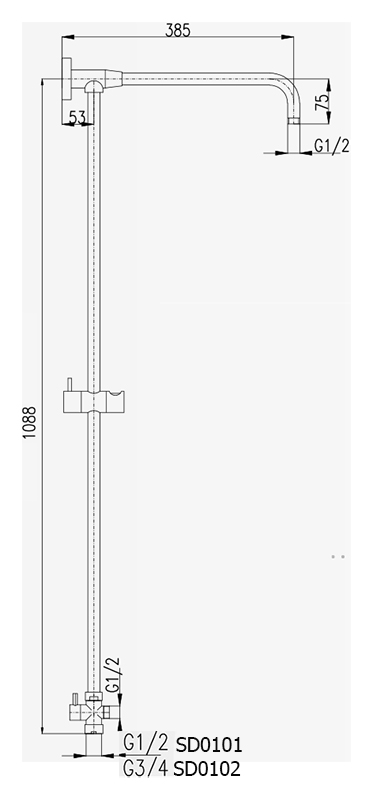 Душевая штанга Rav Slezak SD0101 из металла для верхнего и ручного душей с керамическим переключателем верхний/ручной душ. Подвод воды G1/2, подключение верхнего душа G1/2, подключение душевого шланга G1/2. Высота штанги 1088 мм, длина кронштейна для верхнего душа 385 мм. В комплекте штанга с керамическим переключателем и комплект крепления.