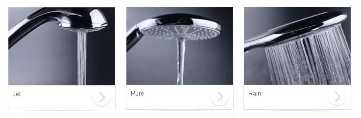 - Ручной душ на три вида струи: Rain (дождь), Jet (бодрящий), Pure (горный родник).