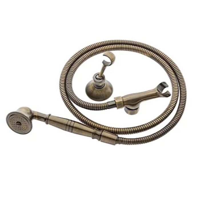 Лейка душевая в цвете бронза, крепится на сантехнику и имеет держатель. Ретро дизайн конструкции подойдет для любой ванной комнаты, лаконично впишется в интерьер. Качественные материалы, которые используются в производстве, обеспечивают исправную работу на протяжении всего срока службы. Поверхность приятна на ощупь, такой эффект достигается тщательной полировкой всего корпуса. Материалы устойчивы к коррозии и перепадам температур.