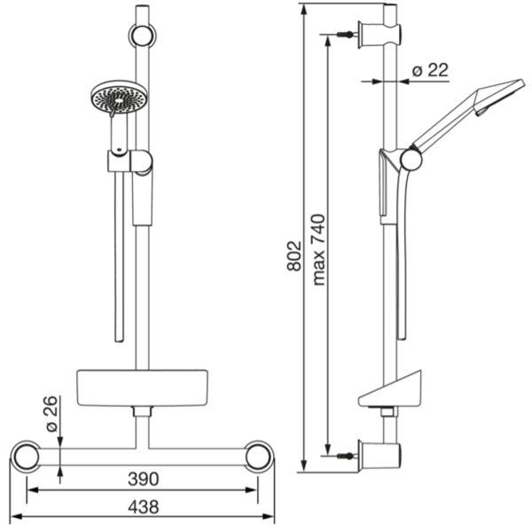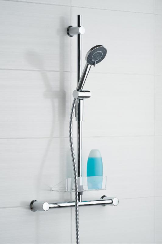 - В комплекте стеклянная полочка для душевых принадлежностей, держатель лейки.