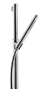 Душевой гарнитур Axor Starck 27980000. В комплекте поставки: Axor Starck штанга 0,90 м, шланг Isiflex 1,60 м, плавная регулировка по высоте, ручной душ регулируется по горизонтали в пределах 180 градусов, конические гайки с обеих сторон.