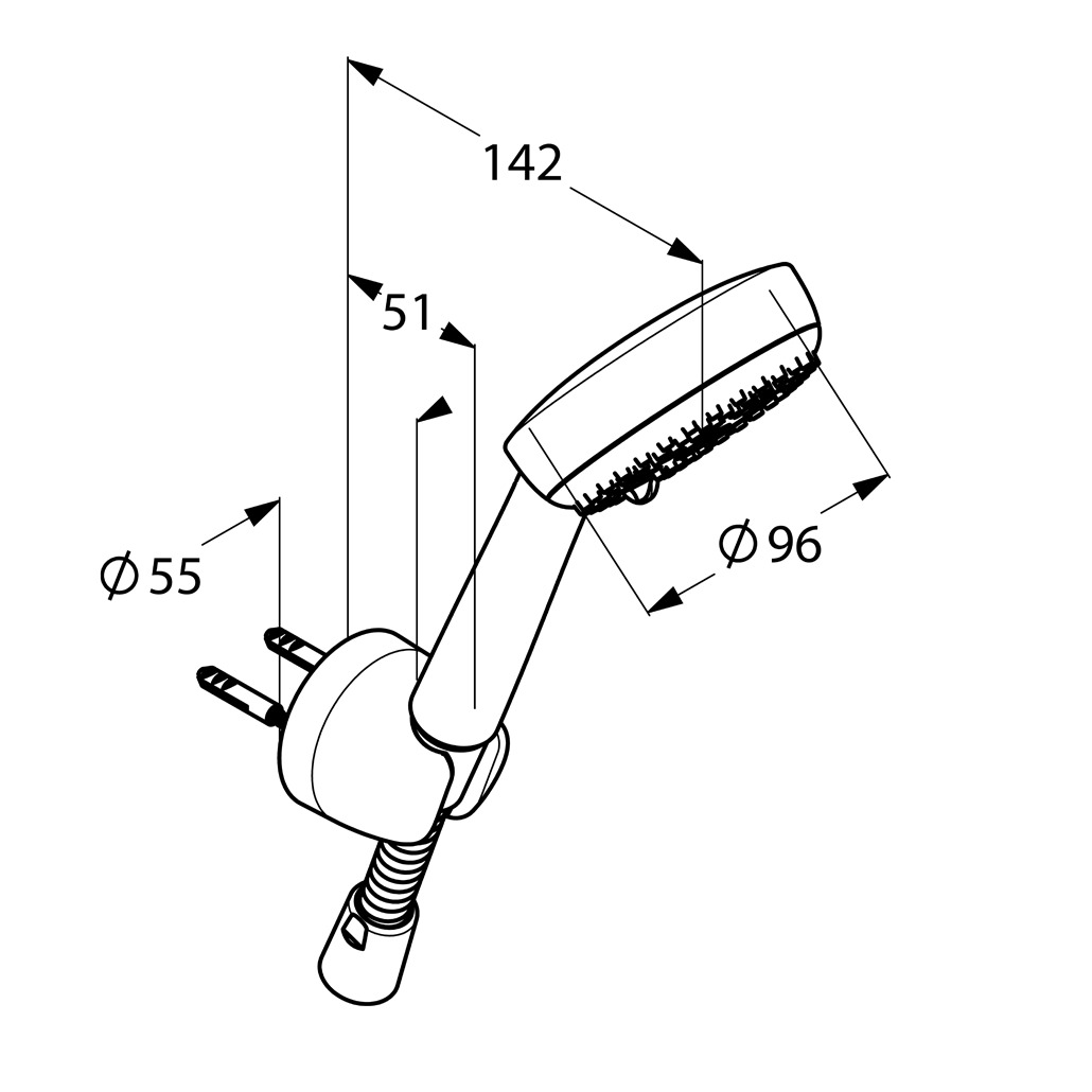 В комплекте поставки: ручная душевая лейка, шланг, настенный держатель для душа.