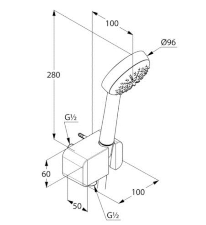 Ручной душ с диаметром диска 9.6 см.