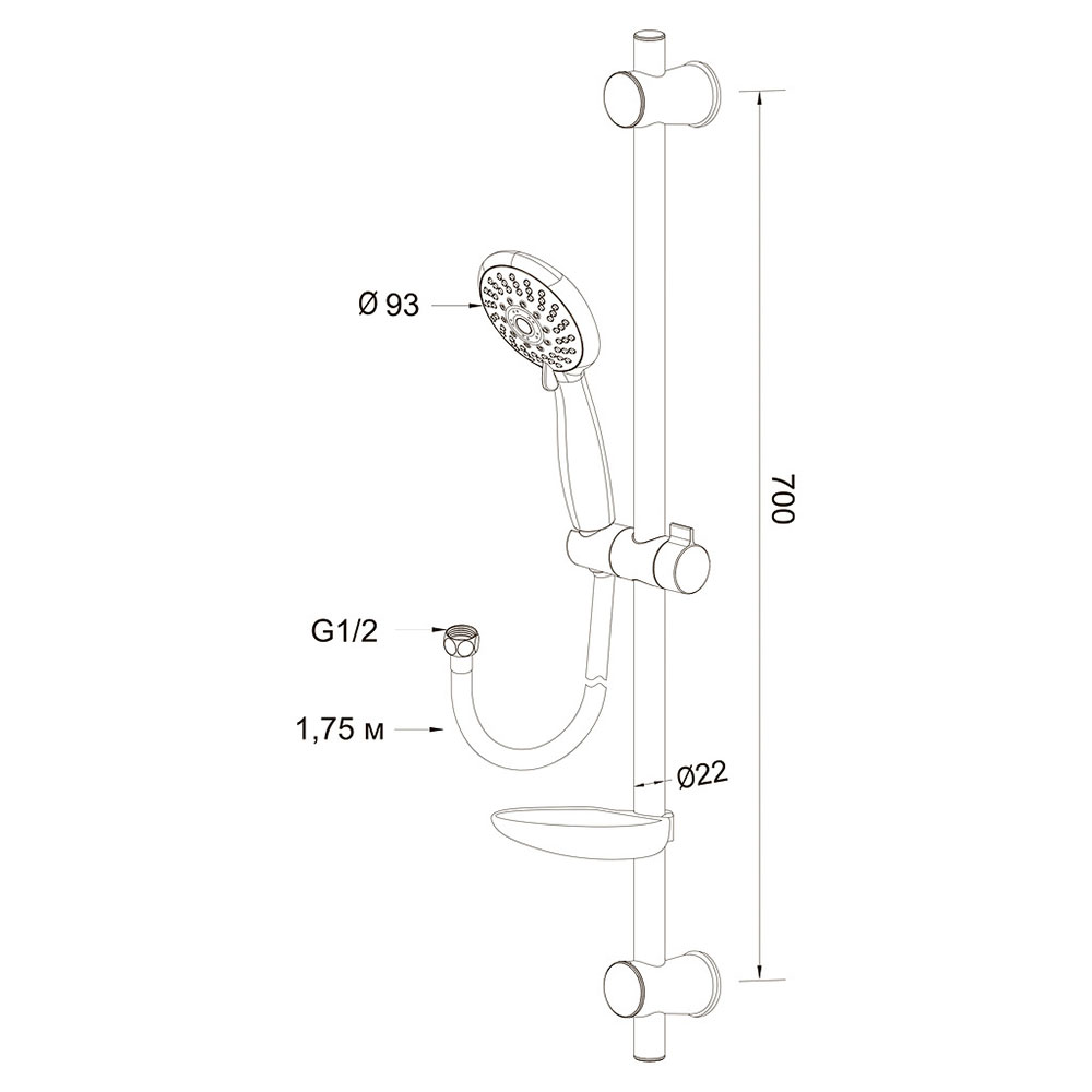 - Диаметр ручного душа: 93 мм с самоочищающимися форсунками.