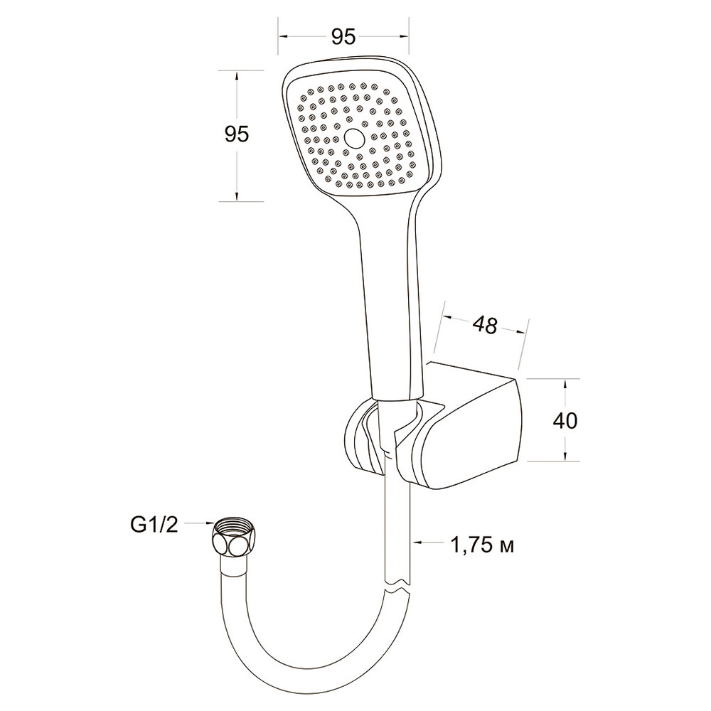 - Габариты ручного душа (ШхД): 95 х 95 мм с самоочищающимися форсунками.