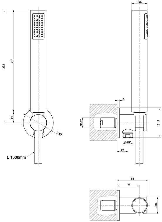 Лейка-комплект со шлангом и переходником Gessi Minimali 14324.031.