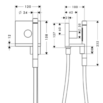 Axor 10651000 AX Starck ShowerCollection модуль ручного душа (внешняя часть). В комплекте поставки: декоративная панель, рукоятка, гильза, душевой шланг Isiflex 1,25 м, ручной душ Axor Starck с двумя типами струи.