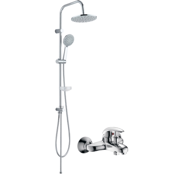 В комплекте поставки: смеситель, душевая стойка, мыльница, эксцентрики, аэратор, переключатель потоков.