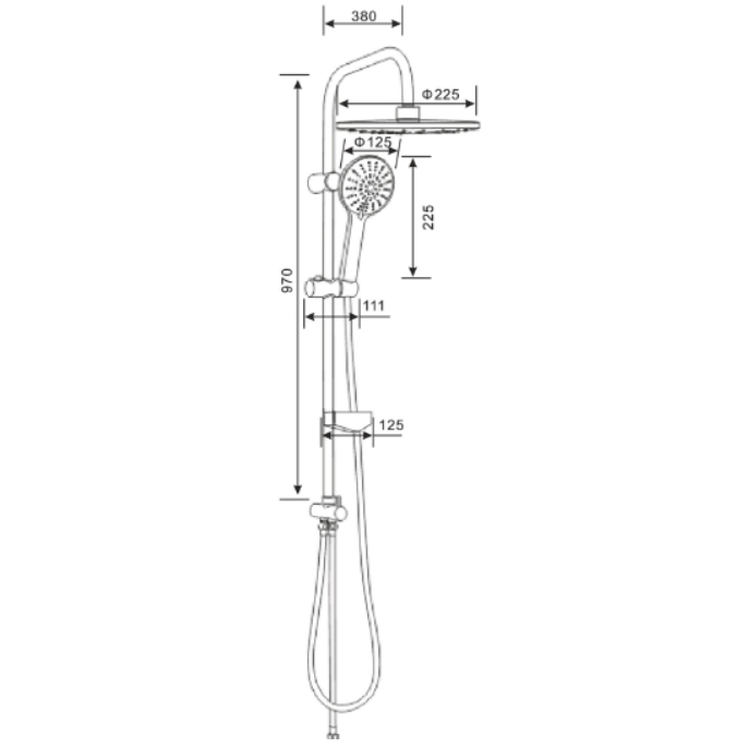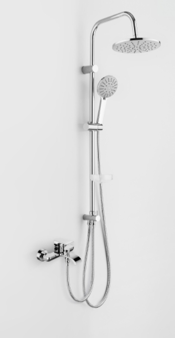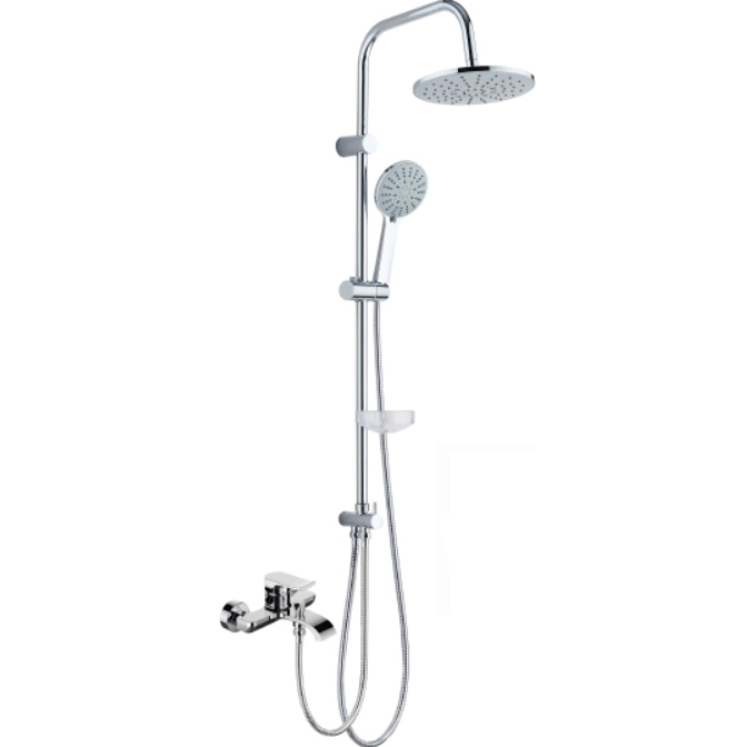 В комплекте поставки: смеситель, душевая стойка, верхний душ, ручной душ, набор для подключения, инструкция.