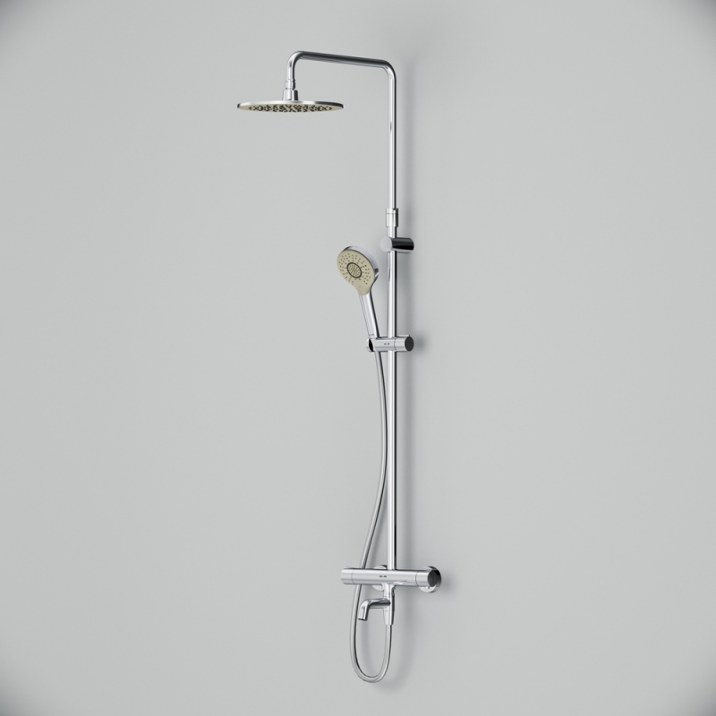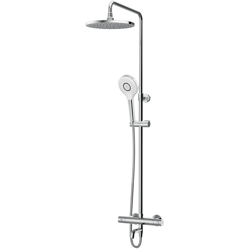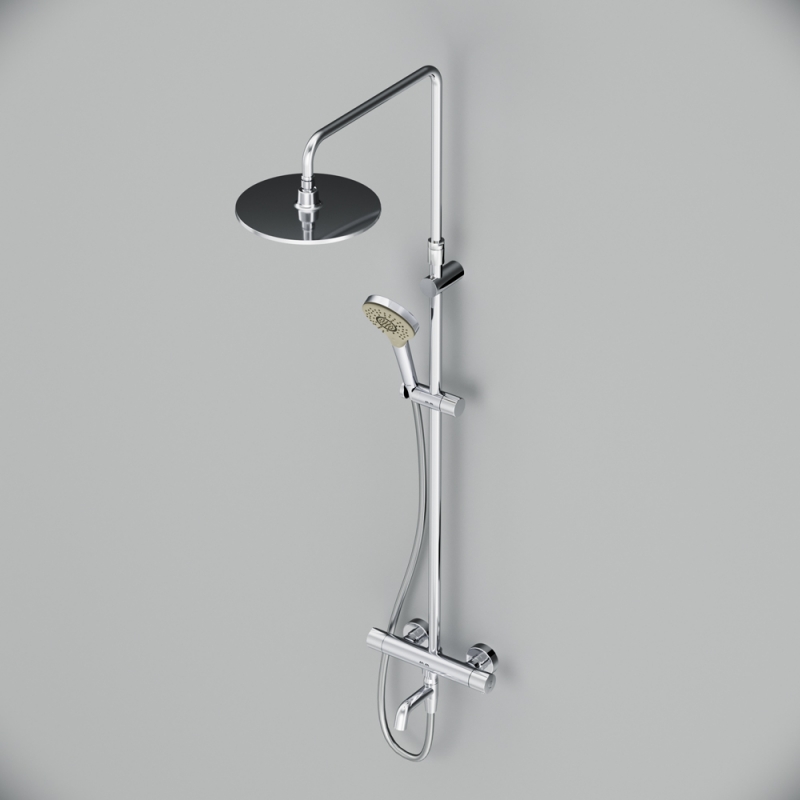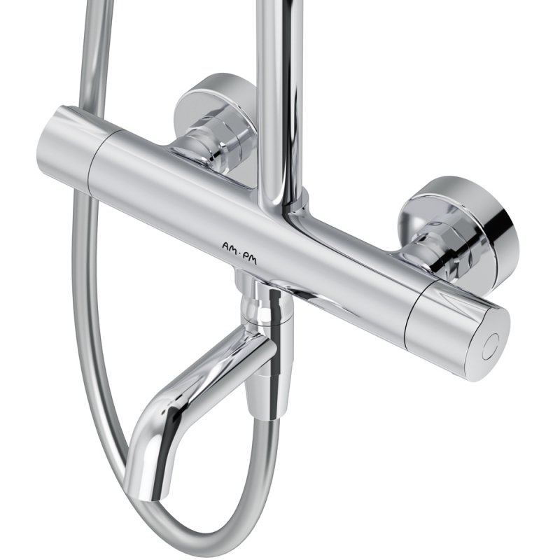 Душевая система AM.PM Chic 2.0 F0782A500 с круглым верхним душем. Смеситель для ванны и душа с термостатом: термостатический картридж с высокочувствительным термоэлементом, стопором безопасности на 38 градусов, быстрой реакцией на изменения температуры или давления надежно защищает от ожога даже при внезапном отключении холодной воды.