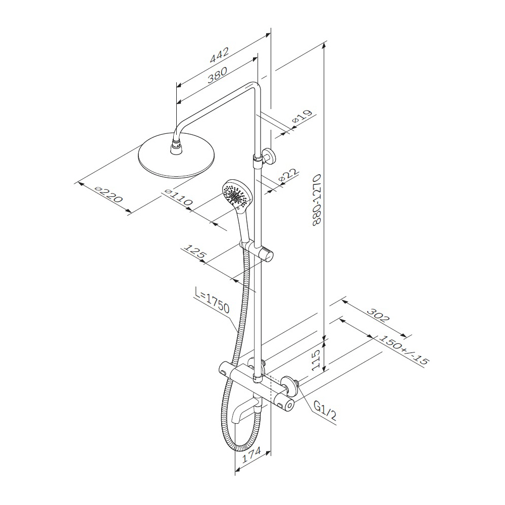 - Длина душевого шланга: 175 см.