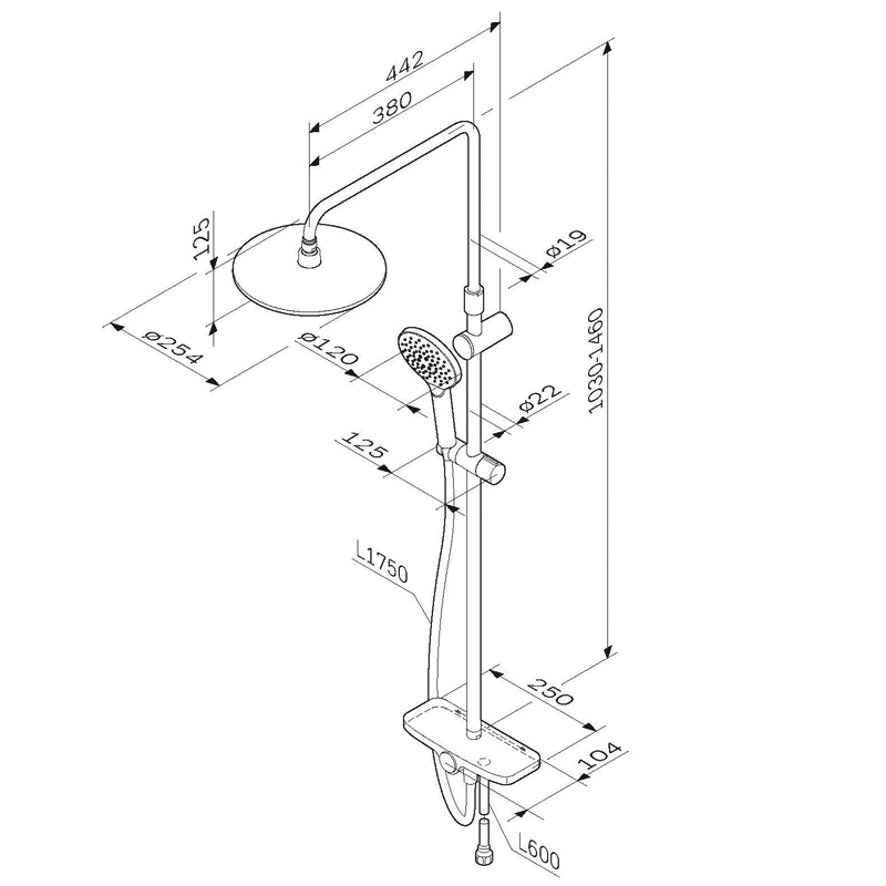 Верхний душ: круглый, D 25,4 см.