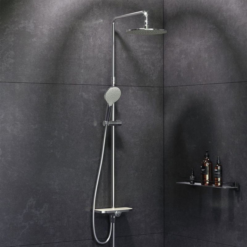 Душевая система AM.PM Like F0780200 с круглым верхним душем и полочкой.