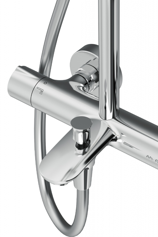 - Душевая система AM.PM Like F0780564 с круглым верхним душем, с термостатическим смесителем с изливом.