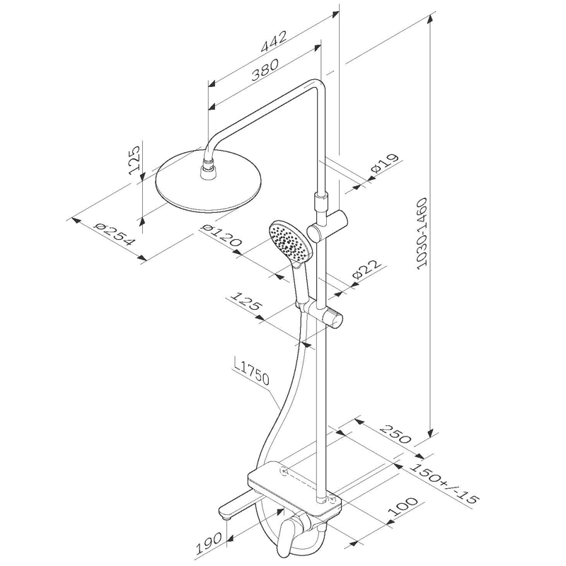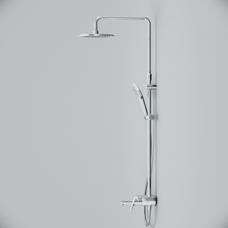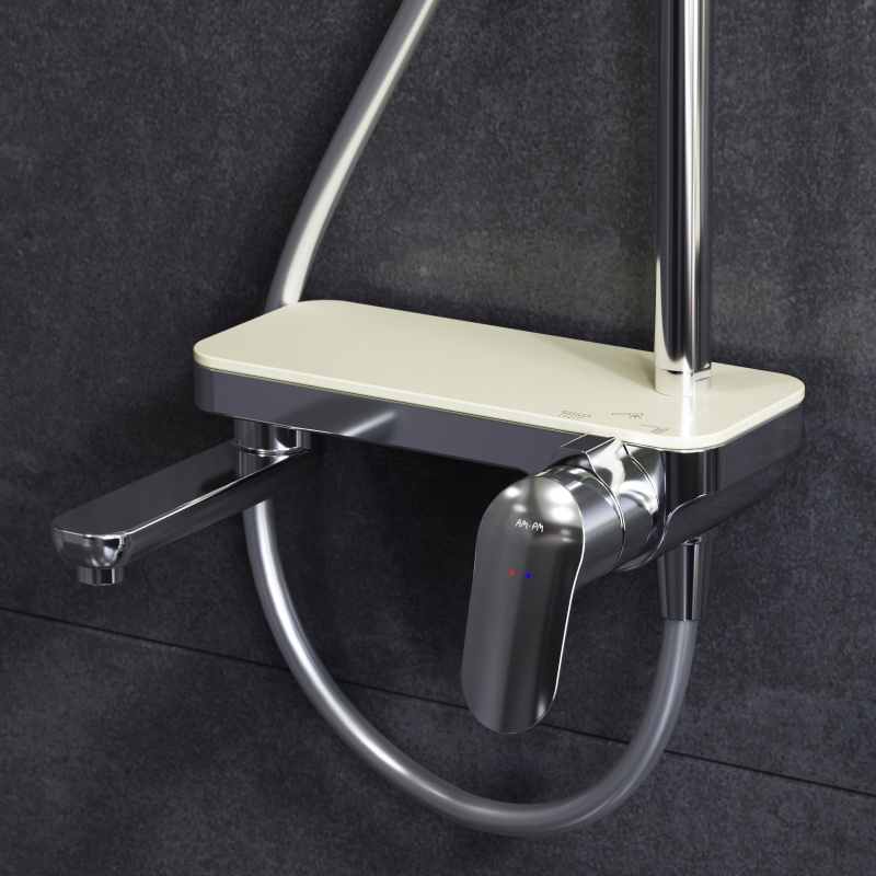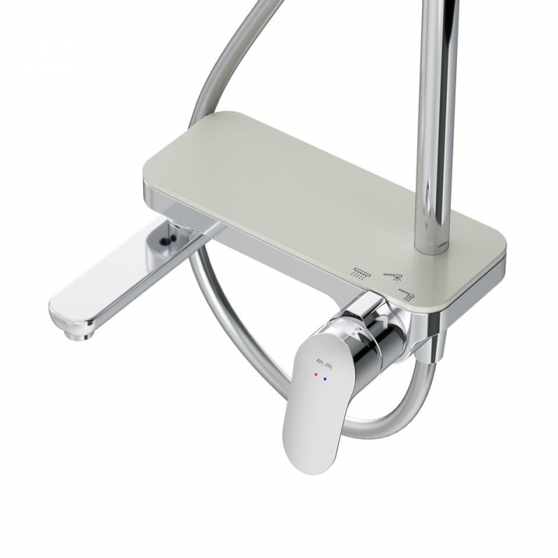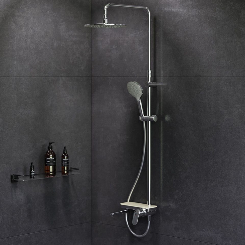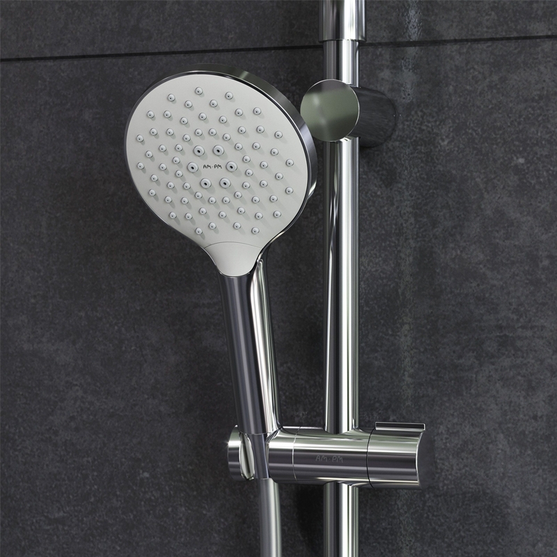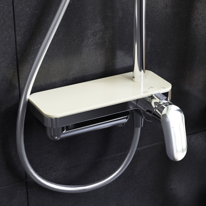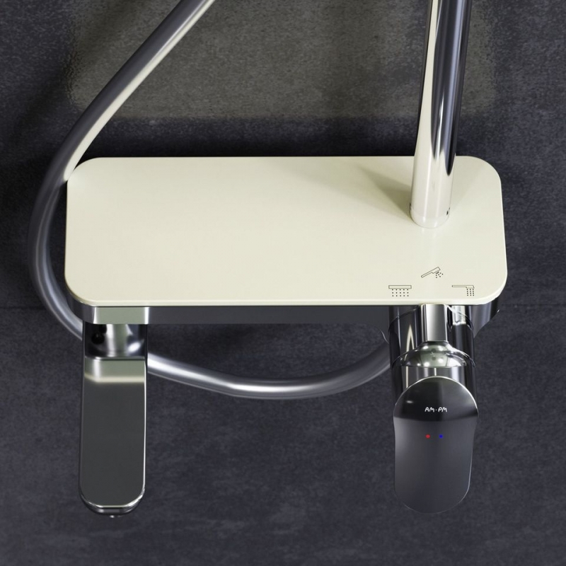 Душевая система AM.PM Like F0780700 с круглым верхним душем, с однорычажным смесителем-полкой.