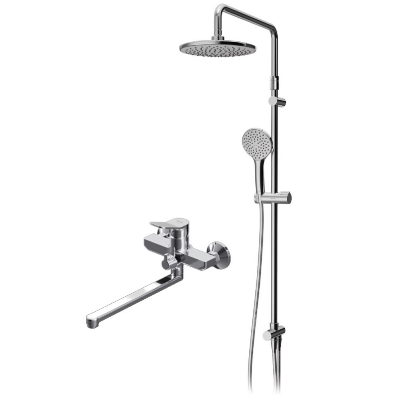 Функциональная душевая система. Поворотная и телескопическая душевая штанга позволит индивидуально настроить расположение верхнего душа в диапазоне до 1460 мм.